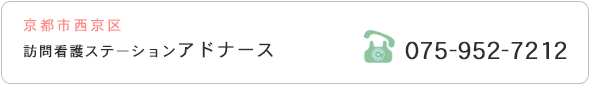 訪問看護ステーション アドナースは、2010年11月に京都市西京区に開設しました。住み慣れた場所でいつまでも生活していたい、病院での治療が終わったら療養は自宅で行いたい、入院が嫌だ、いろいろな思いを持った方達が在宅生活をされておられます。